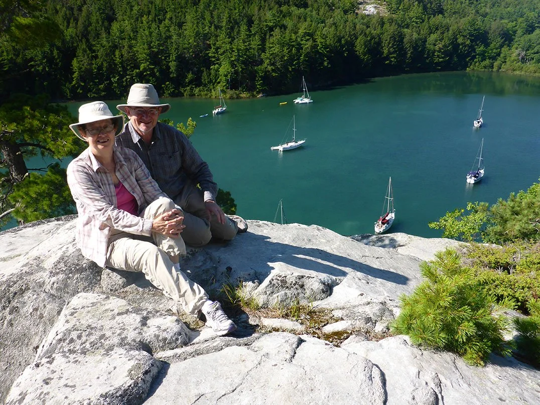 John and Irene Clement sit high above a gathering of trailer sailors in the North Channel.