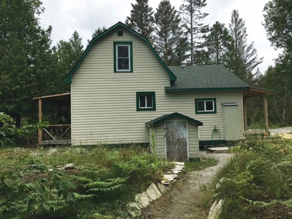 This early farmhouse style is seen everywhere on Manitoulin and indeed in all of Ontario – variations on a small wood frame home with a steeply pitched roof, a central entrance door in front with a ‘pointy’ gable and dormer window or transom over it and two evenly-spaced windows on either side. The style first gained popularity in 1865, when the Canada Farmer magazine published the architectural plans for the “ideal home” for a small family, known as the Ontario Gothic Revival Cottage, The wide use of these plans over one hundred and fifty years ago ensured that the style has become almost synonymous with settler architecture – it was the most common residential design in all of Ontario prior to the 1950s.